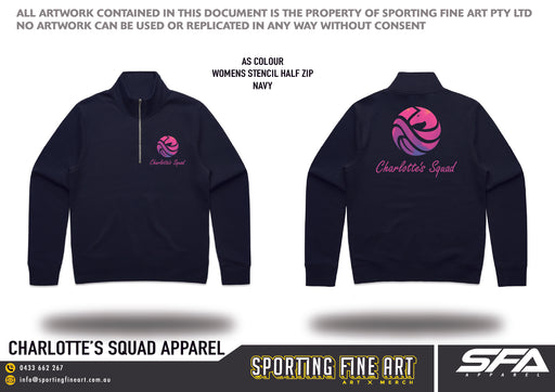 Charlotte's Squad Navy Women's Stencil Half Zip Crew
